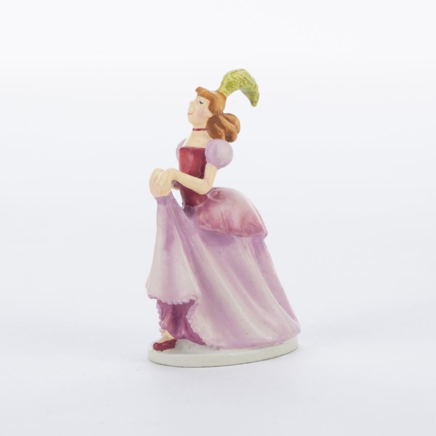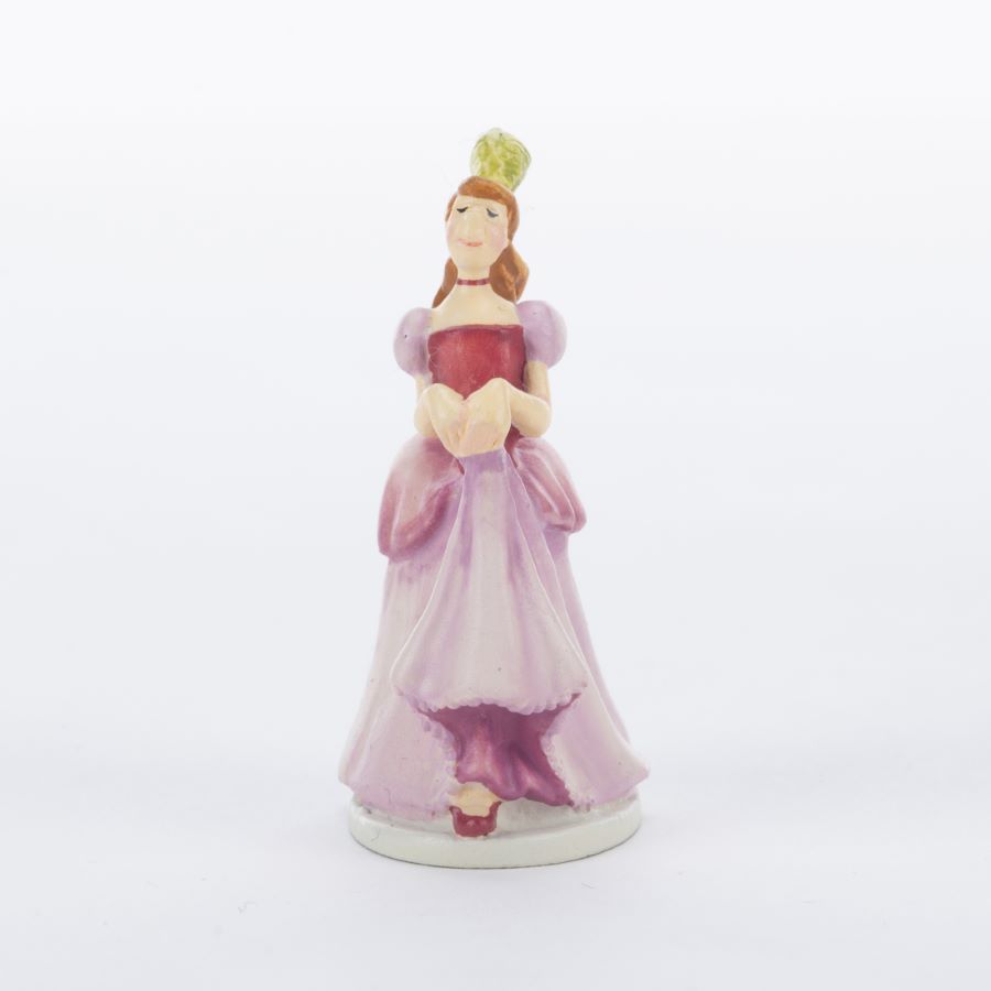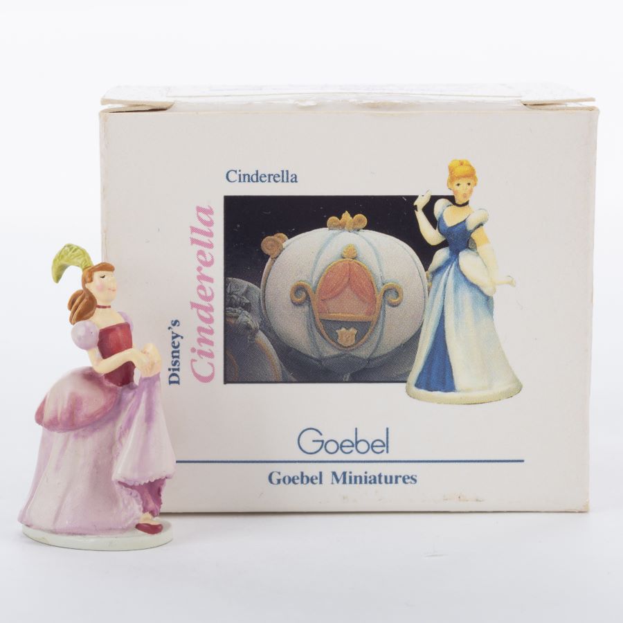 A miniature figurine inspired by the Walt Disney Studios animated feature “Cinderella.” Featuring the stepsister Anastasia, the figurine was designed in 1991 by miniature master Robert Olszewski for Goebel. Measuring 1.5” tall, the painted bronze miniature is in very good condition in the original box.
