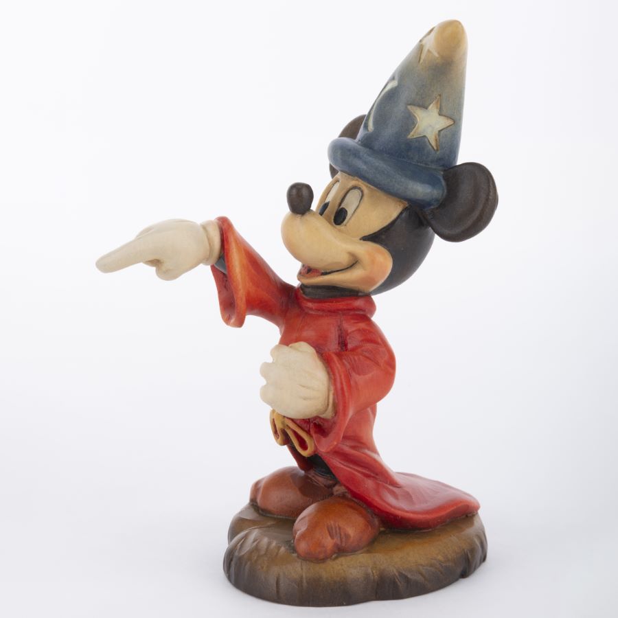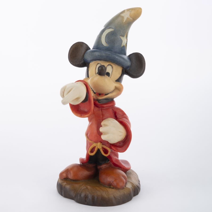 A detailed statuette of the Mickey Mouse as the Sorcerer’s Apprentice from “Fantasia.” Released in 1988 by ANRI, the painted wood figurine is carved from Alpine Maple from Austria. Measuring 2.5”x4” and 5.5” tall, the figurine was produced in an edition of only 500 pieces and is in very good condition.