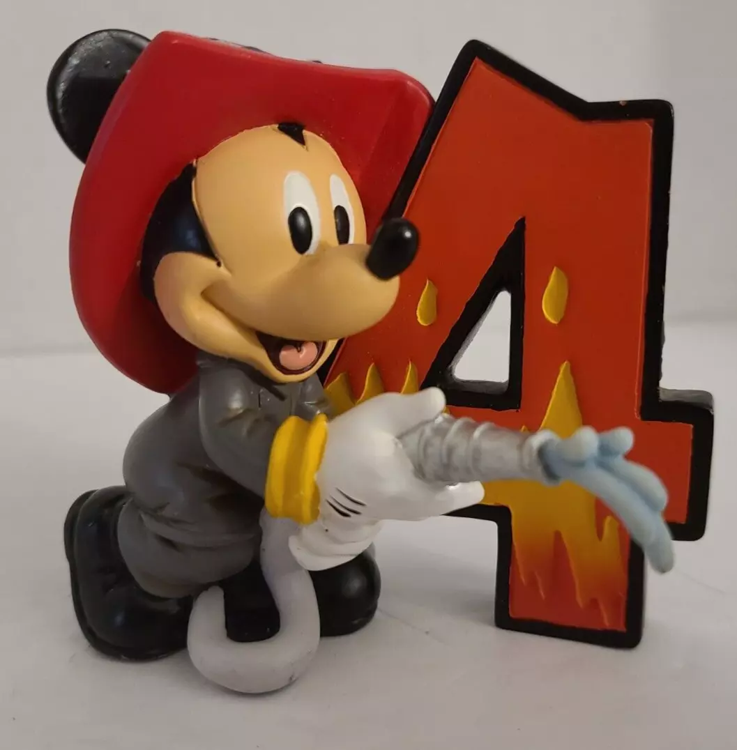 A birthday figurine of Mickey Mouse as a fireman. Titled “Celebration #4,” the resin figurine was released by Enesco in 2010 as part of the Disney Showcase Collection. Measuring 3.25”x2” and 2.75” tall, the figurine is in fine condition and comes with the original box.