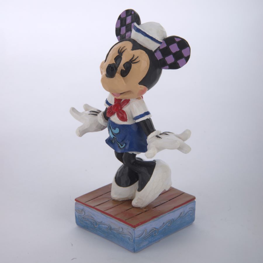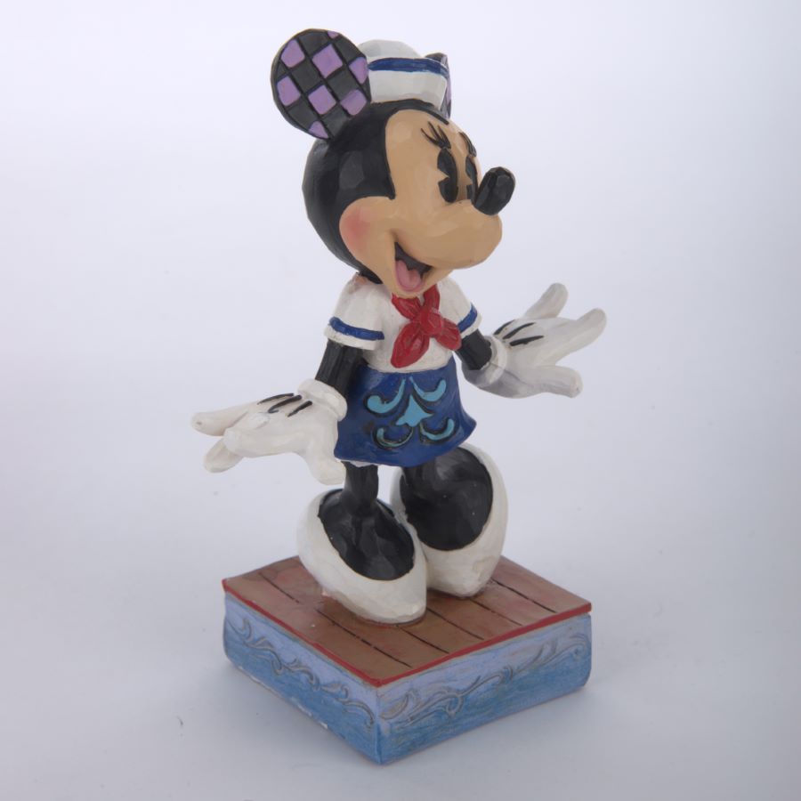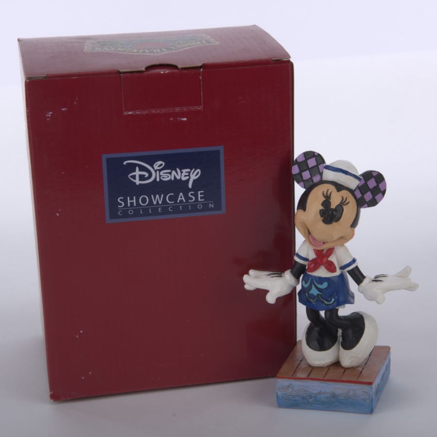 A Disney Traditions figurine of Minnie Mouse in adorable sailor costuming. Titled “Sassy Sailor,” the stone resin figurine was designed by Jim Shore and released by Enesco in 2020 as part of the Disney Showcase Collection. Pairs well with the Mickey Mouse “Snazzy Sailor” figurine, sold separately. Measuring 3.5”x2” and 5” tall, the figurine is in fine condition and comes with the original box.
