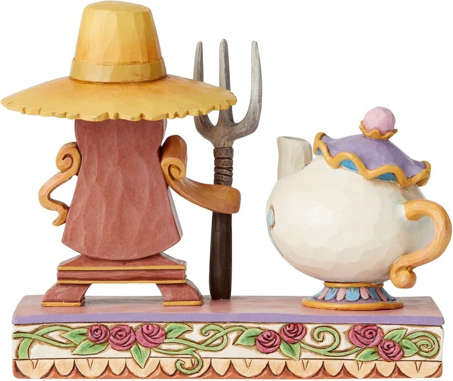 A Disney Traditions figurine of Mrs. Potts and Cogsworth from Disney's "The Beauty and the Beast." Titled “Workin' Round the Clock,” the figurine was designed by Jim Shore and released in 2019 by Enesco as part of the Disney Showcase Collection. Measuring 6.25”x3” and 5” tall, the figurine is in fine condition and comes with the original box.