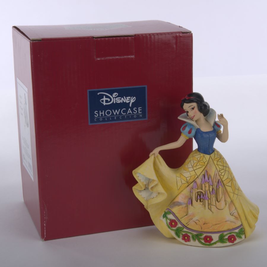 A Disney Traditions figurine of Snow White inspired by the titular character of “Snow White and the Seven Dwarfs.” Titled “Castle in the Clouds,” the stone resin figurine was designed by Jim Shore and released by Enesco in 2015 as part of the Disney Showcase Collection. Measuring 5”x2.75” and 5.75” tall, the figurine is in fine condition and comes with the original box.