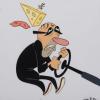 A multi-layer production cel from the Nickelodeon Studios animated series “The Ren & Stimpy Show” (1991-1996). Featuring Ren, Stimpy, and the unique Reverend Jack Cheese, the hand-painted cel was created at the studio and used during the animation process. The cel is an actual frame of animation that was photographed and appears in the episode titled “Reverend Jack,” which aired on December 9, 1995. Measuring 10.5”x20.5” overall, with a character image size of 9”x14”, the cel is in good condition with minor scratches, minimal paint and black line fade, the left edge of sweat layer is cracked, and the left side of Reverend Jack Cheese layer is heavily vertically creased and broken around peg areas.