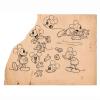 A studio printed model sheet from the Walt Disney Studios. Featuring various standard design elements of Mickey Mouse and Minnie Mouse, the model sheet was created at the studio in the 1930s and used during the animation process to ensure character consistency among animators. Measuring 9.75”x12.75” overall with an angled cut, and the image area measuring 8.5”x10.25”, the model sheet is in good condition with wear from age and handling including discoloration, edge and corner wear, staple holes at the top right, staining throughout, and a large cut removing the entire upper left corner from the sheet.