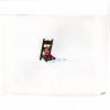 A production cel from the Walt Disney Studios animated film “Winne the Pooh and the Blustery Day” (1968). Featuring Piglet stranded on his floating chair, the hand-painted cel was created at the studio and used during the animation process. The piece is an actual frame of animation that was photographed and appears in the cartoon. Measuring 12.5”x16” overall, with the character image measuring 3.5”x4”, the cel is in very good condition with light minimal surface and edge wear. The cel is paired with a printed reproduction background.