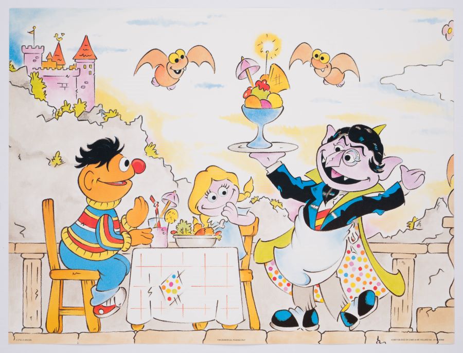 A limited edition Ernie and The Count Sesame Street print. Featuring an adorable illustration of The Count bringing a bowl of ice cream to Ernie, published by Comic & Art. Measuring 12"x16", the lithograph is in fine condition.