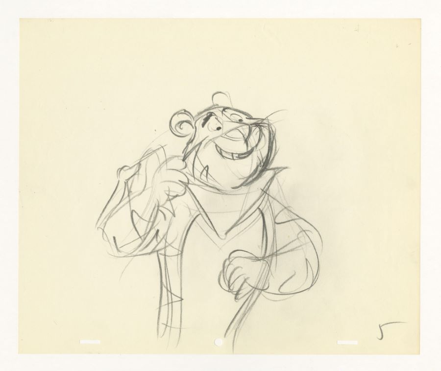 A production drawing from a Quartet Films animated commercial for Frosted Flakes Cereal (c.1950s). Featuring a rough sketch of an excited Tony the Tiger, the drawing was created at the studio and used during the animation process. Measuring 10"x12.5" overall, with the character image measuring 7.5"x7", the drawing is in fine condition with minimal edge wear.
