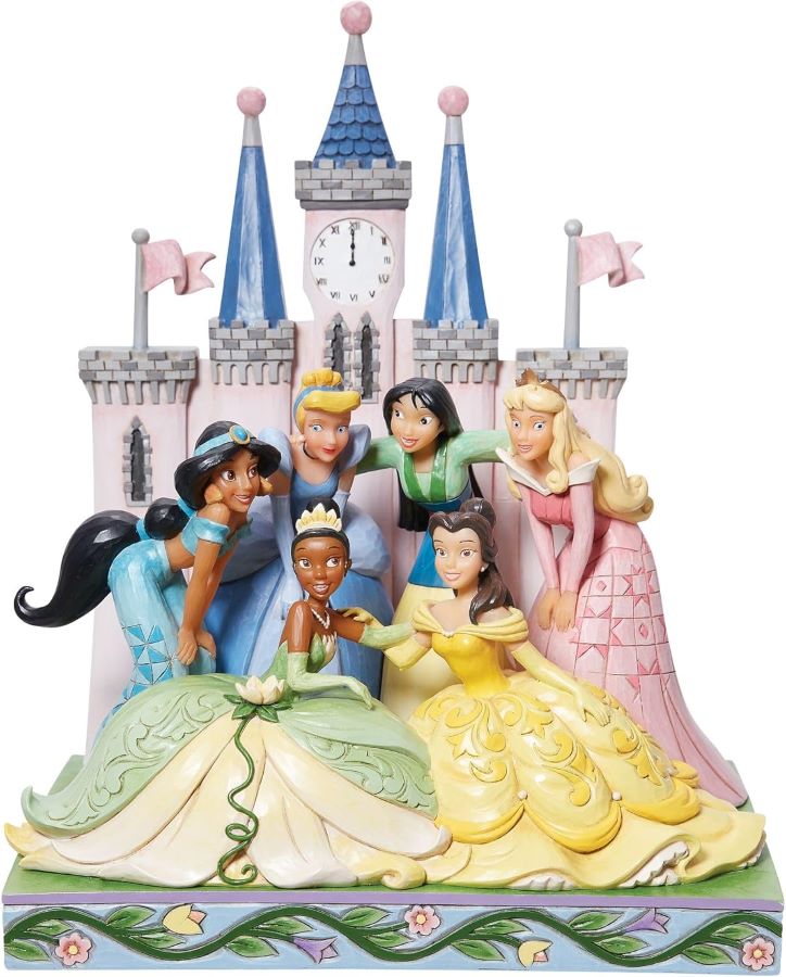 A Disney Traditions figurine of Disney Princesses including Jasmine, Cinderella, Mulan, Aurora, Tiana, and Belle. Titled ‘Beautiful and Brave,’ the stone resin figurine was designed by Jim Shore and released in 2023 by Enesco as part of the Disney Showcase Collection. Measuring 8.5”x6.5”x10” tall, the figurine is in fine condition and comes with the original box.