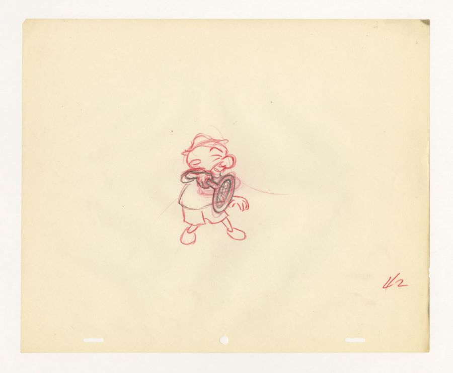 A production drawing from a UPA Studios animated film with Mr. Magoo (c. 1950s). Featuring the tiny Mr. Magoo playing tennis, the drawing was created at the studio and used during production. Measuring 10.25"x12.5" overall, with the character image measuring 3.5"x2.5", the drawing is in fine condition with minimal edge wear and a small bit of discoloration on the top right corner and edge.