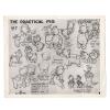 A photostat model sheet from the Walt Disney Studios animated film Practical Pig (1939). Featuring all three little pigs and both wolves, the model sheet was created at the studio and used during the animation process to ensure character consistency among animators. Measuring 10”x12.5” overall, with the image area measuring 8.5”x11”, the model sheet is in very good condition with wear from age and handling including discoloration, edge and corner wear, and staple holes.